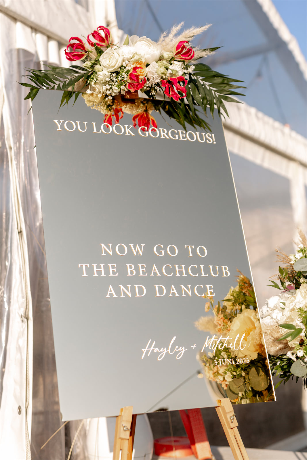 Maar waar de eerste dag draaide om pure emotie, was de tweede dag bij Beachclub Naturel een explosie van leven. We verruilden de kasteelmuren voor het zand van Scheveningen. Het was een dag van blote voeten, proosten in de zon en een energie die alleen maar toenam. Het was geweldig om iedereen te zien genieten van de optredens van Wolter Kroes @wolter_kroes en Brace @brace_nl, maar het absolute hoogtepunt was de avond: een vuurwerkshow die de zee verlichtte terwijl de gasten, opgezweept door de muziek van de Lawineboys en Donny Roelvink, de liefde vierden op de meest authentieke manier.